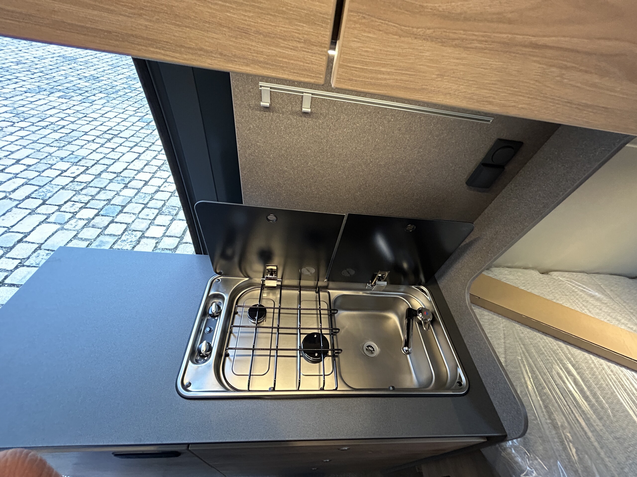 2-Flamm-Kocher- und Spülen-Kombination mit Elektrozündung