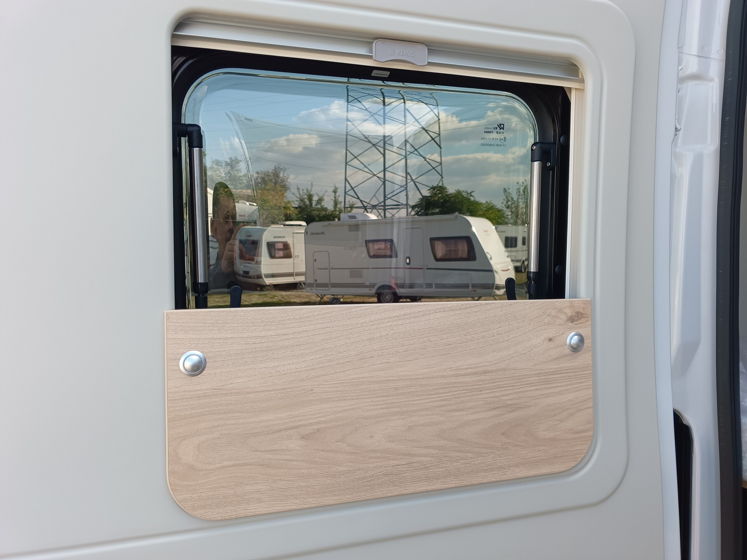 Fenster mit Fliegenschutz und Verdunklungsrollo in Hecktüren