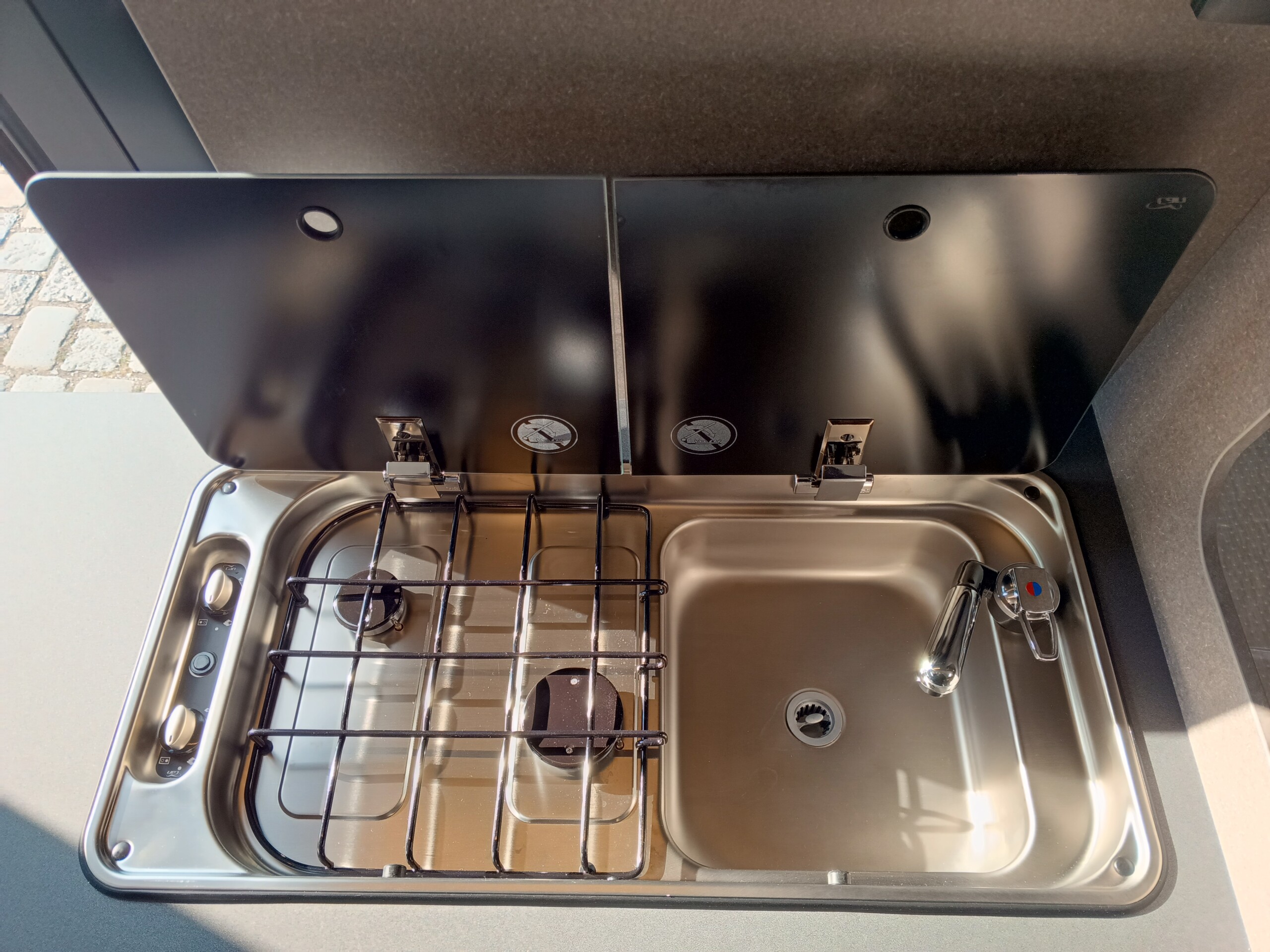 2-Flamm-Kocher- und Spülen-Kombination mit Elektrozündung