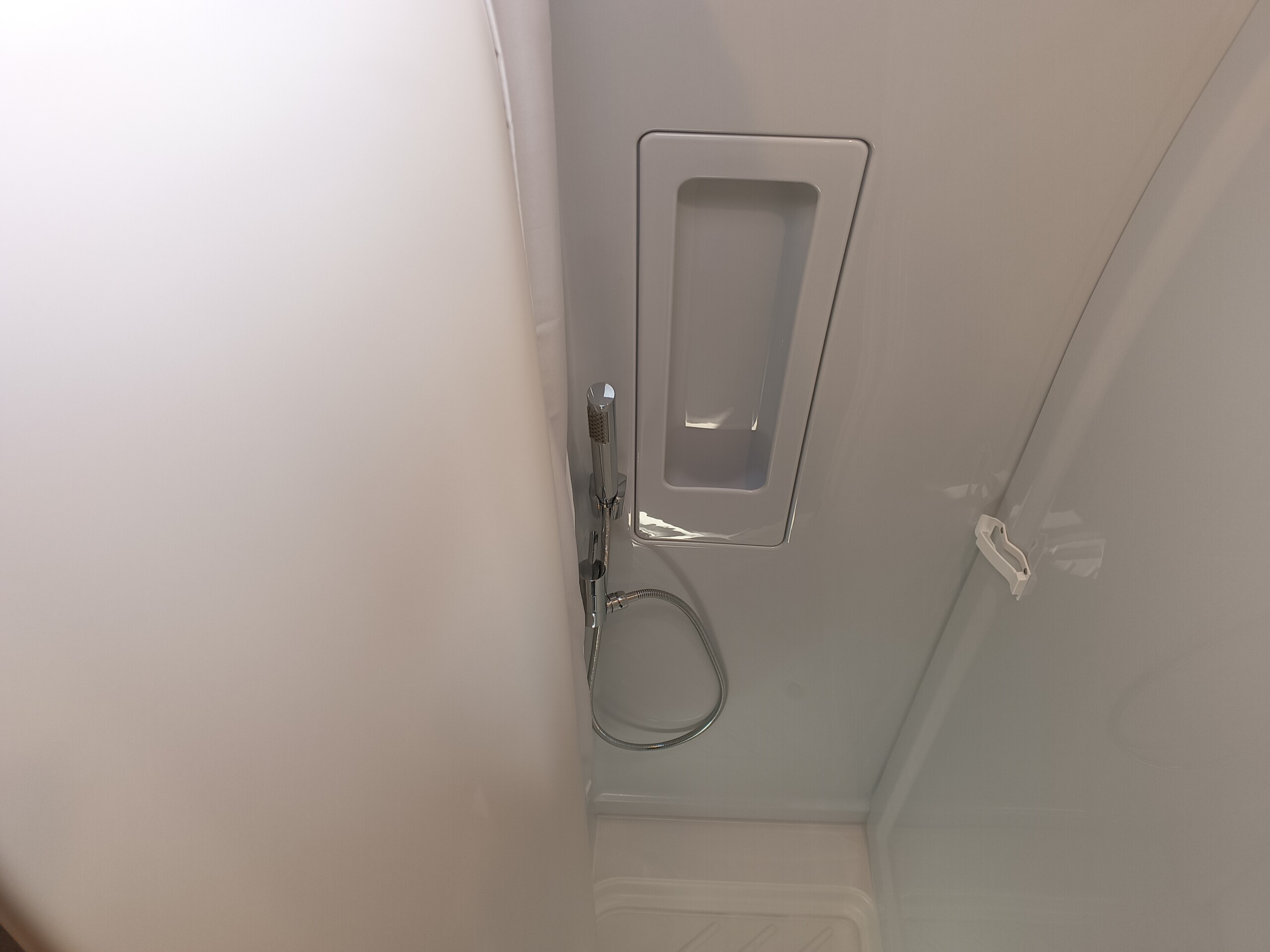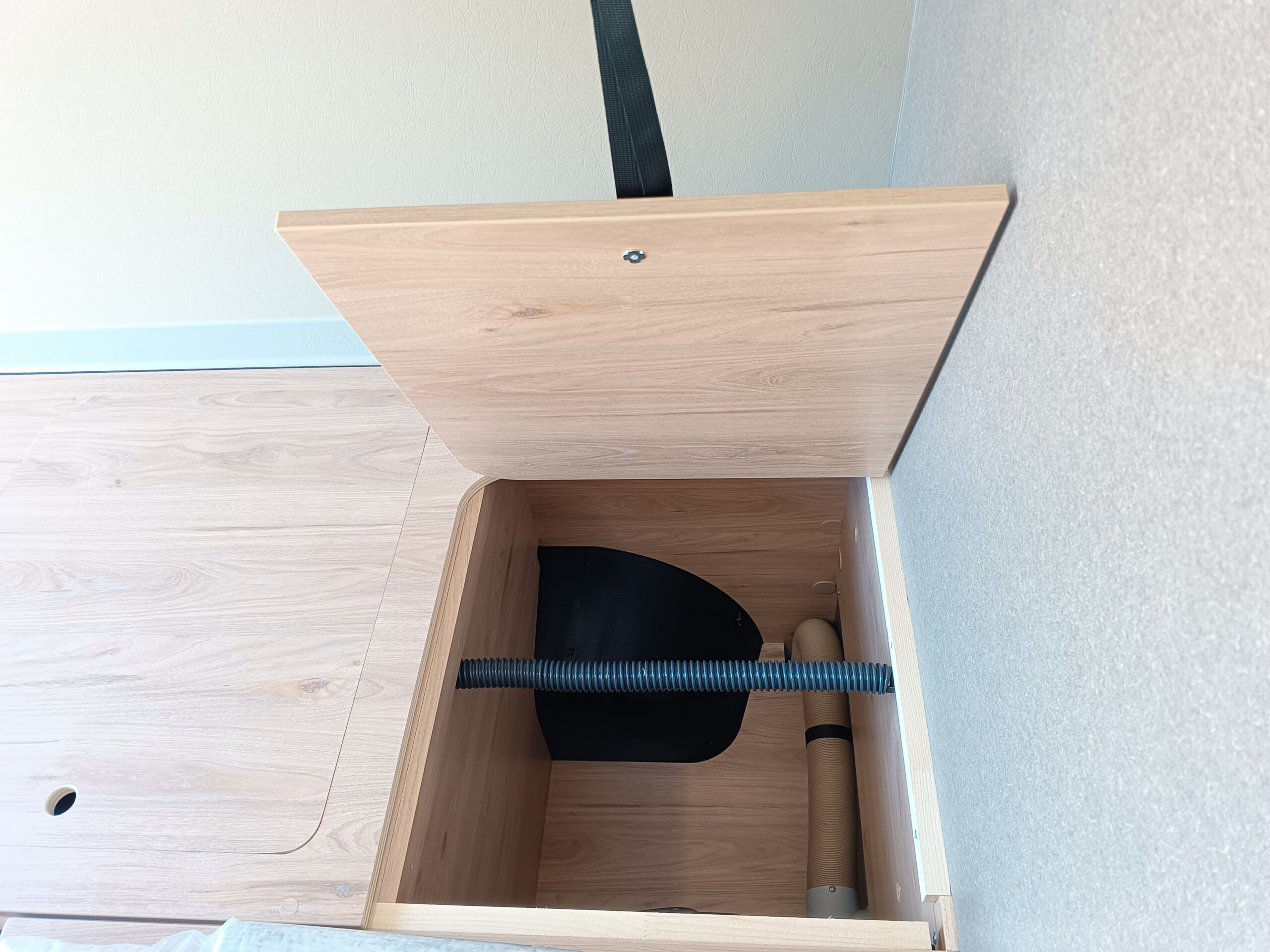 Schwenkbad mit Holztüre, Schwenkwand und Kassettentoilette